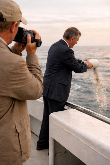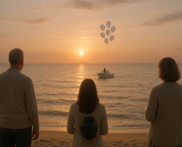 Our Shoreline Scattering Package offers families a peaceful way to say goodbye from the comfort of the shoreline. As our boat gently carries your loved one’s cremains out to sea, you may witness the ceremony from shore, surrounded by the calming sounds of the ocean. After the scattering is completed, the vessel returns and releases balloons in tribute—symbolizing that your loved one has been tenderly and respectfully released into the water.